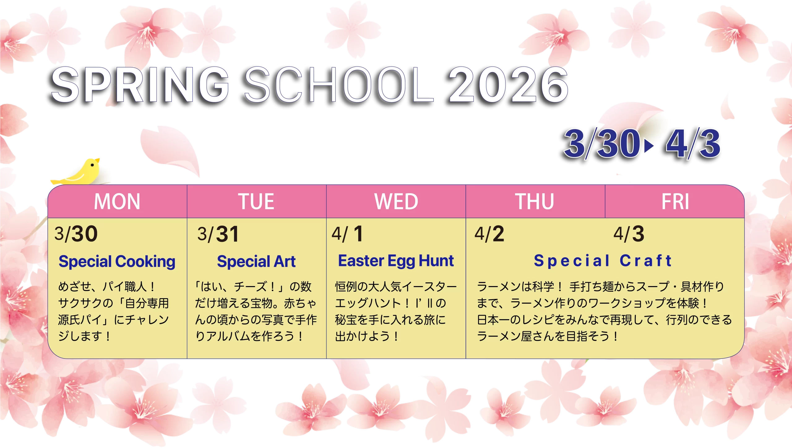 春休みに開催される、体験と学習を兼ねたスペシャルプログラムです。